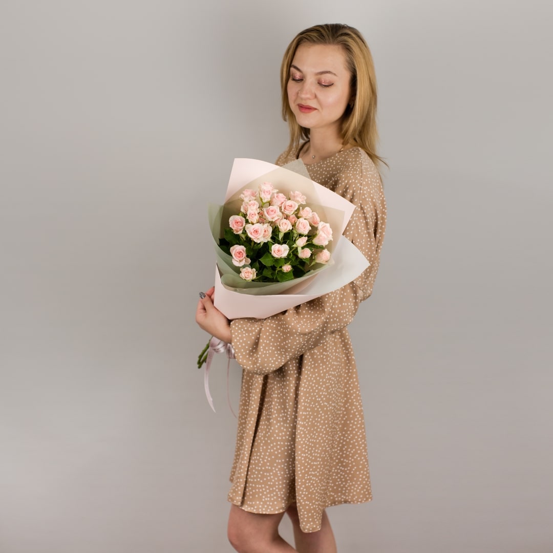 Букет из кустовых пионовидных роз персикого цвета арт. 45353